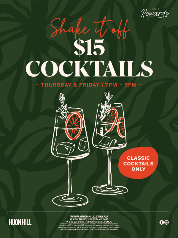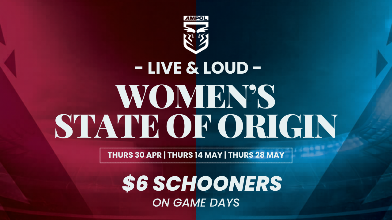 Join us at Huon Hill for all Women’s State of Origin Games LIVE & LOUD! Thursday 30 April, Thursday 14 May and Thursday 28 May are the days to book. We’ll have $6 selected schooners during live games and all the vibes!